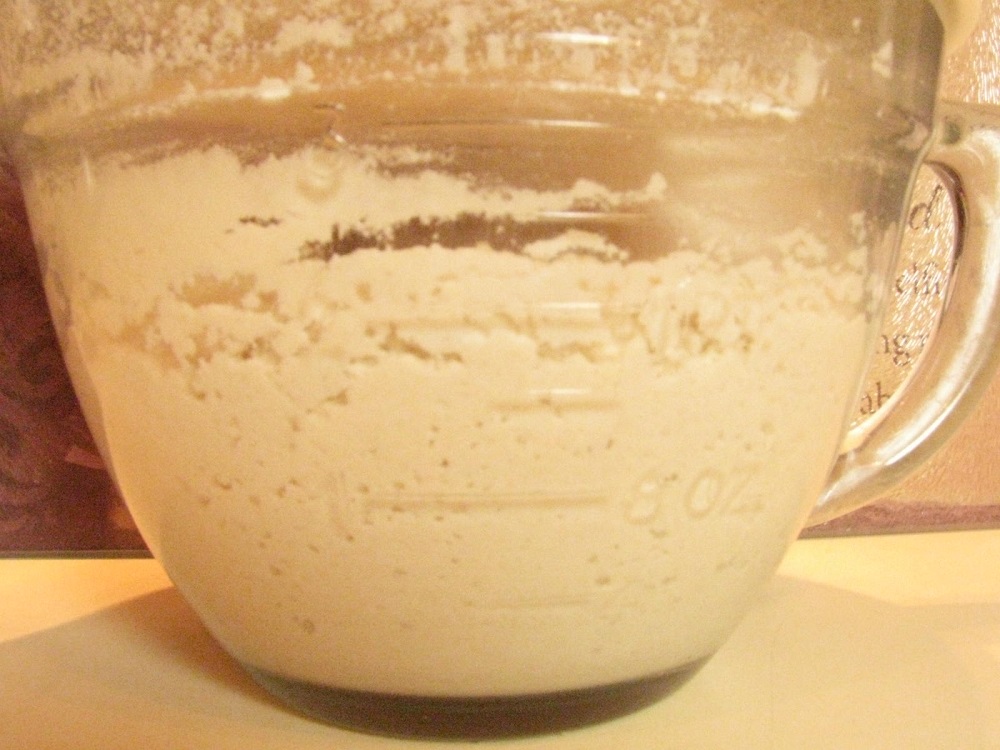 And here is a top view.  The top looks a little dry.  It has been sitting, covered on my counter all day.  I’m ready to use some in a recipe for breakfast and then I will feed it.