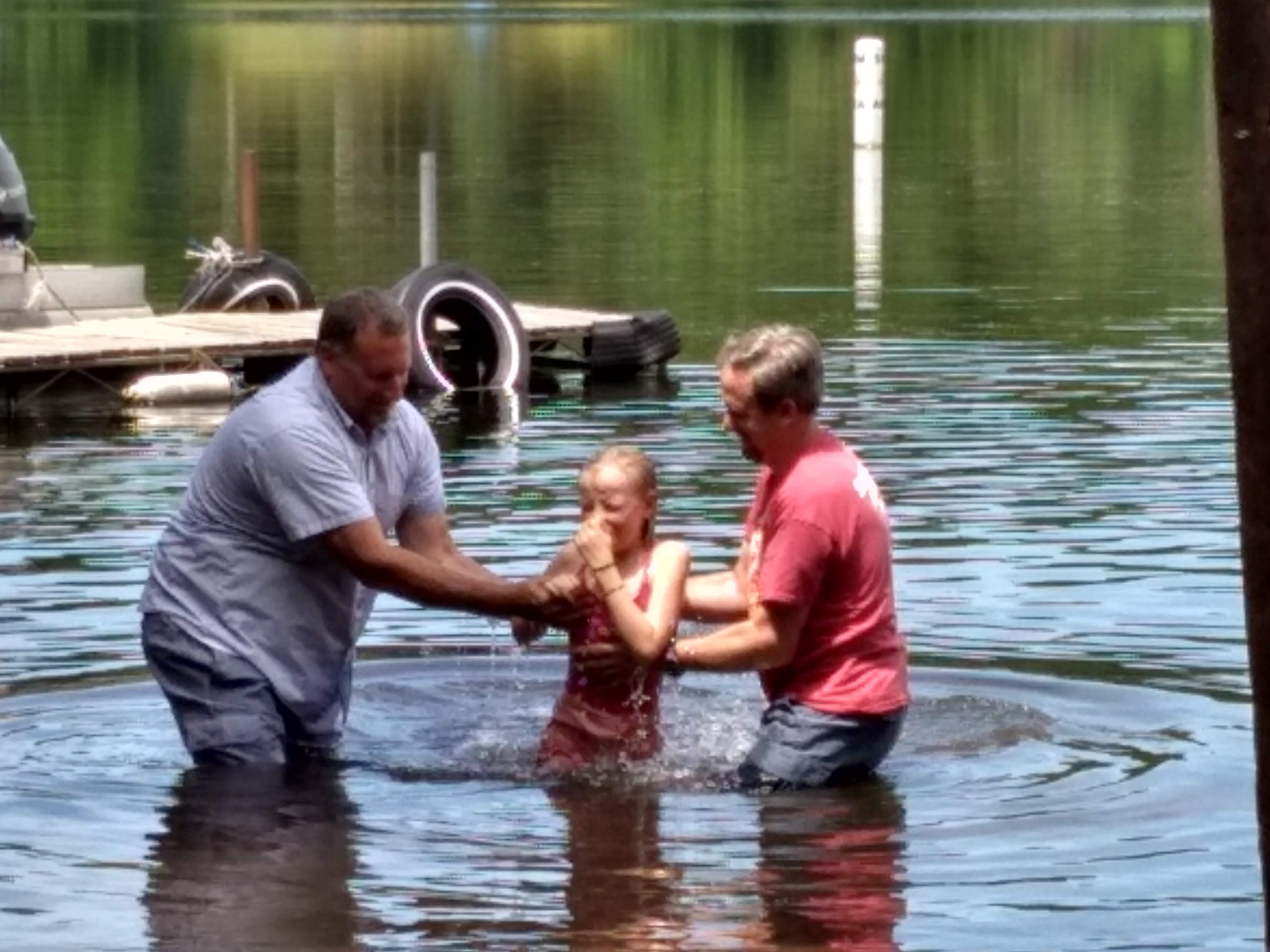 Two of our children, Ella and Abigail, coming up from their baptisms, performed by our pastor (left) and their father (right). June 30, 2019 Our son Christian was also baptized, but in my eagerness to watch, I was too slow with the camera!
