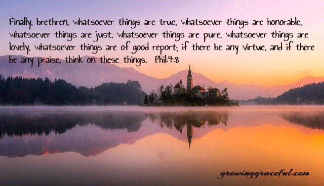 Years ago, I memorized Philippians 4:8 in the Amplified Version with my children, and we used this verse to carefully examine our influences (movies, books, etc.) and clean out–big time.