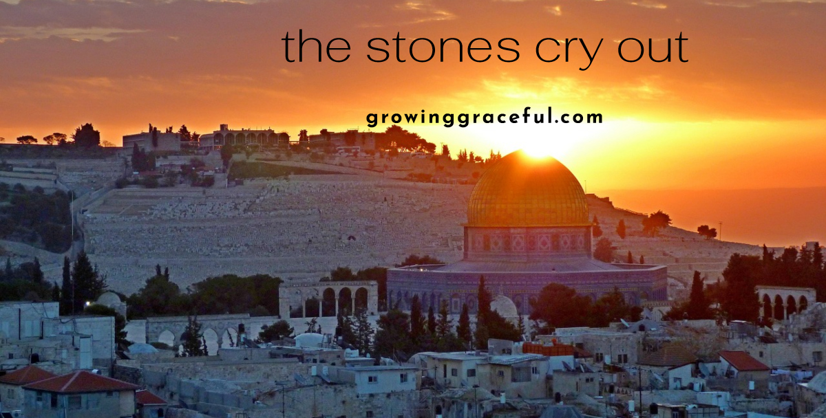 Perhaps Jesus was talking about the very rocks that they walked upon, or perhaps they referred to the stones of the temple where they worshiped, but I love the picture that God painted for me about this ~ that when Jesus was on trial, his disciples were silent. They were all blinded to the fact that it was Jesus’s death, burial, and resurrection that would bring them peace. Because of that, he was crucified. When Jesus committed his spirit to his Father, the church was immediately born, as we witness by Christ telling the believing thief who trusted in Him, “Today you will be with me in paradise.” It is we, the Believers, who are the living stones who are the temple of God, over whom Jesus Christ is the Head. It is we who cry out,
